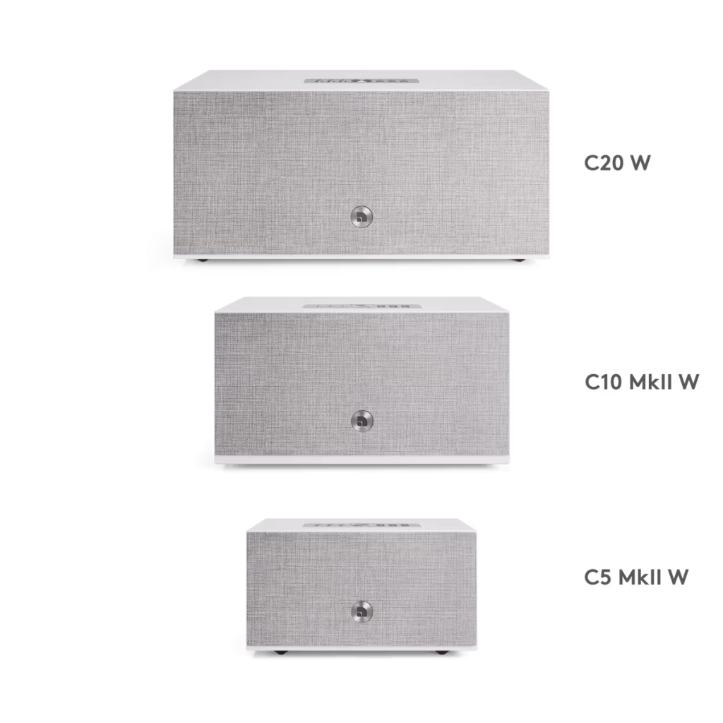 True to its heritage, Audio Pro’s design team gave the W-generation a subtle yet comprehensive visual refresh. The new series unifies color schemes, grille fabrics, and metal accents for a consistent look across the lineup. Revised logo placement, cleaner back plates, and updated tactile finishes bring a sense of refinement without losing the brand’s minimalist charm.