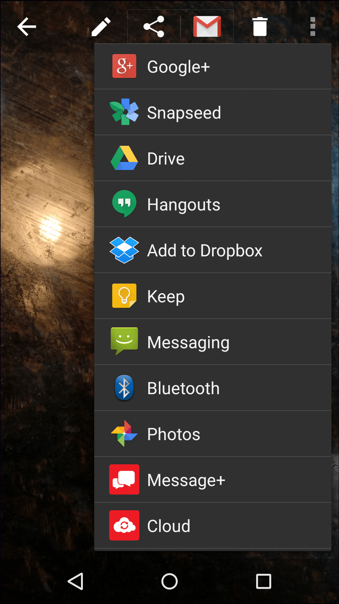 Just took a picture and now you want to send to your friend’s email addresses? Easy. Want to upload to Facebook? Maybe you want back it up to Dropbox or Google Drive. Android makes it very easy to share documents, links, media, and other items. In nearly every case you’ll find a simple “share” listed in menu options. In other cases it might say “send to” or something else.
